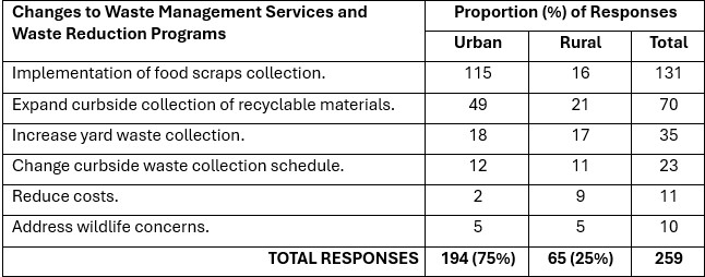 - Almost 10% of respondents identified wanting more frequent yard waste collection or to expand the collection season.